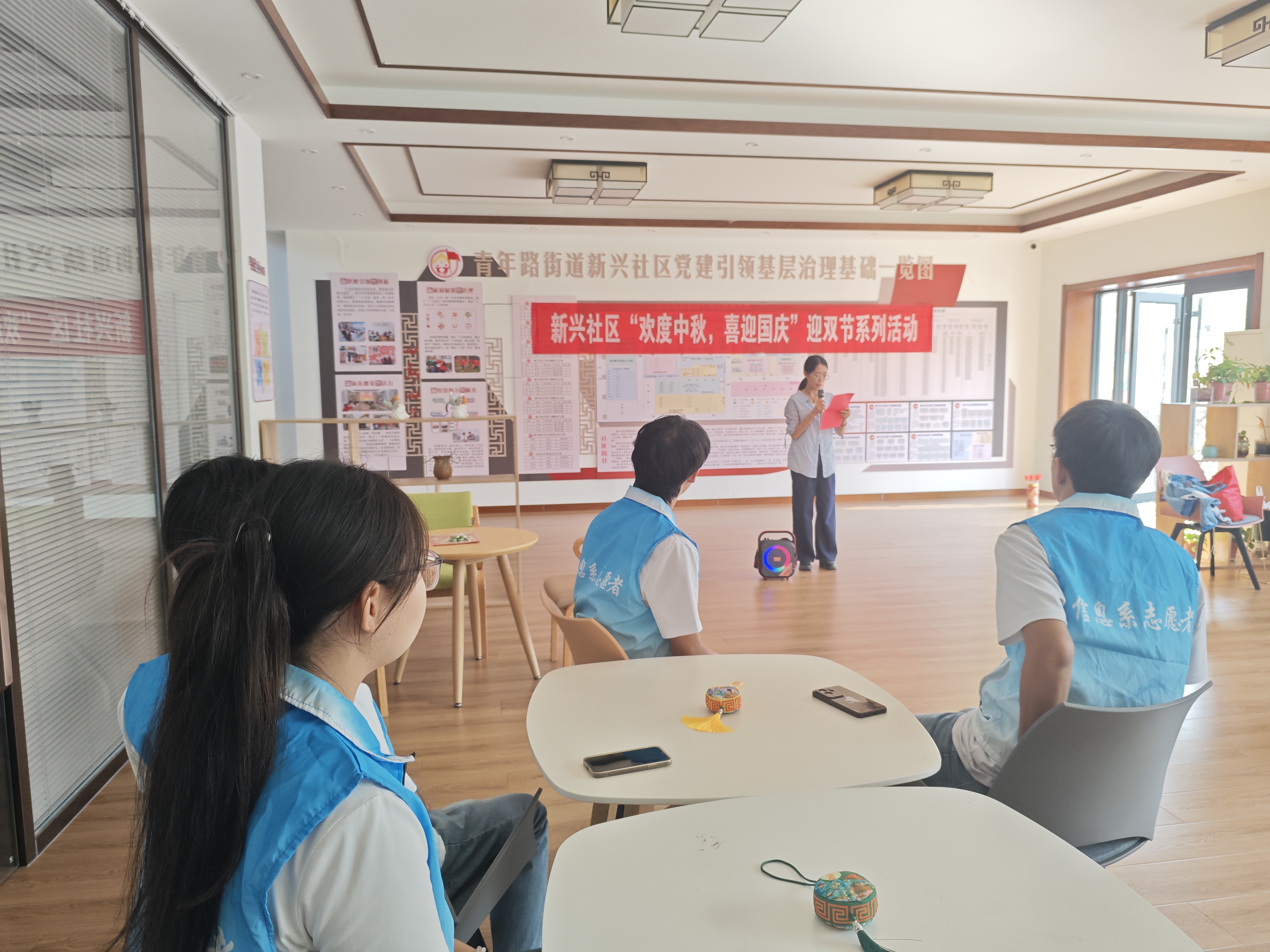 9月28号,信息系组织志愿者走进丰南区新兴社区,开展“月明映家国,书香暖邻里”主题志愿活动。以一系列充满传统韵味的互动环节,为社区居民送上满含温度的节日关怀。